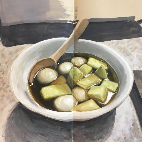 Noelle Feodora Mok (b.1993) is a Canadian emerging artist based in Richmond Hill (York Region), Ontario. She received a BFA specializing in Drawing and Painting at OCAD University and a certificate in Event Management β Event & Exhibit Design from Seneca College. She assumes the role of a painting chef through her food paintings as a catalyst to realizing the cultural importance of food as a central aspect of social interactions within culture and heritage. Mok has exhibited in group shows and art fairs within Toronto and the GTA.